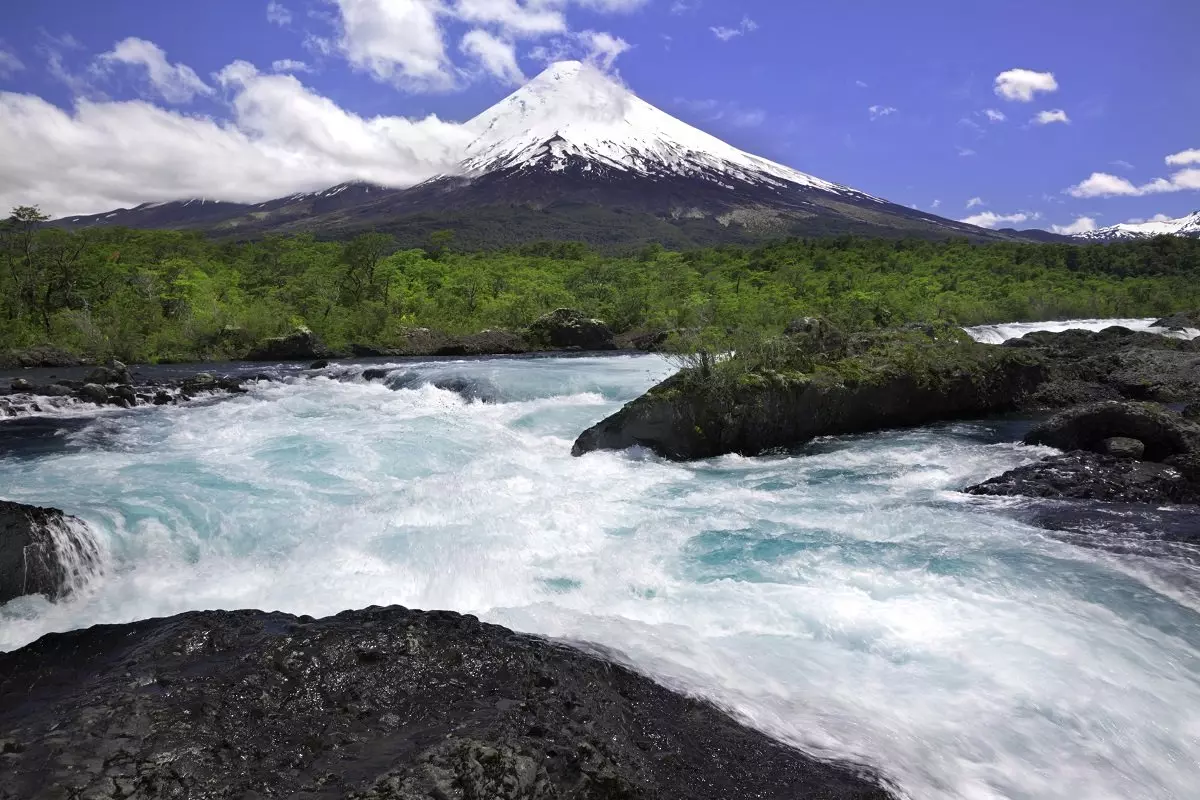 In de middag vaar je met een catamaran over Lago Todos los Santos, dat ook wel ‘het smaragdgroene meer’ wordt genoemd vanwege de diepgroene kleur van het water. Leun tijdens de tocht achterover en bewonder het uitzicht op de met sneeuw bedekte vulkanen Osorno, Tronador en Puntiagudios. Na een vaart van ongeveer twee uur meert de catamaran aan in Petrohué, waar je de indrukwekkende Petrohué-watervallen kunt bezoeken. Daarna vervolg je je weg met de bus langs de oevers van het meer Lago Llanquihue tegen de indrukwekkende achtergrond van de vulkaan Osorno en het landschap van Calbuco. Je bestemming voor vandaag is Puerto Varas, dat een werkelijk idyllische locatie heeft naast het meer, met de besneeuwde vulkanen op de achtergrond. Puerto Varas is een prachtig bewaard gebleven stad, gesticht in 1854 door Duitse immigranten – wat duidelijk terug te zien is in de plaatselijke architectuur.