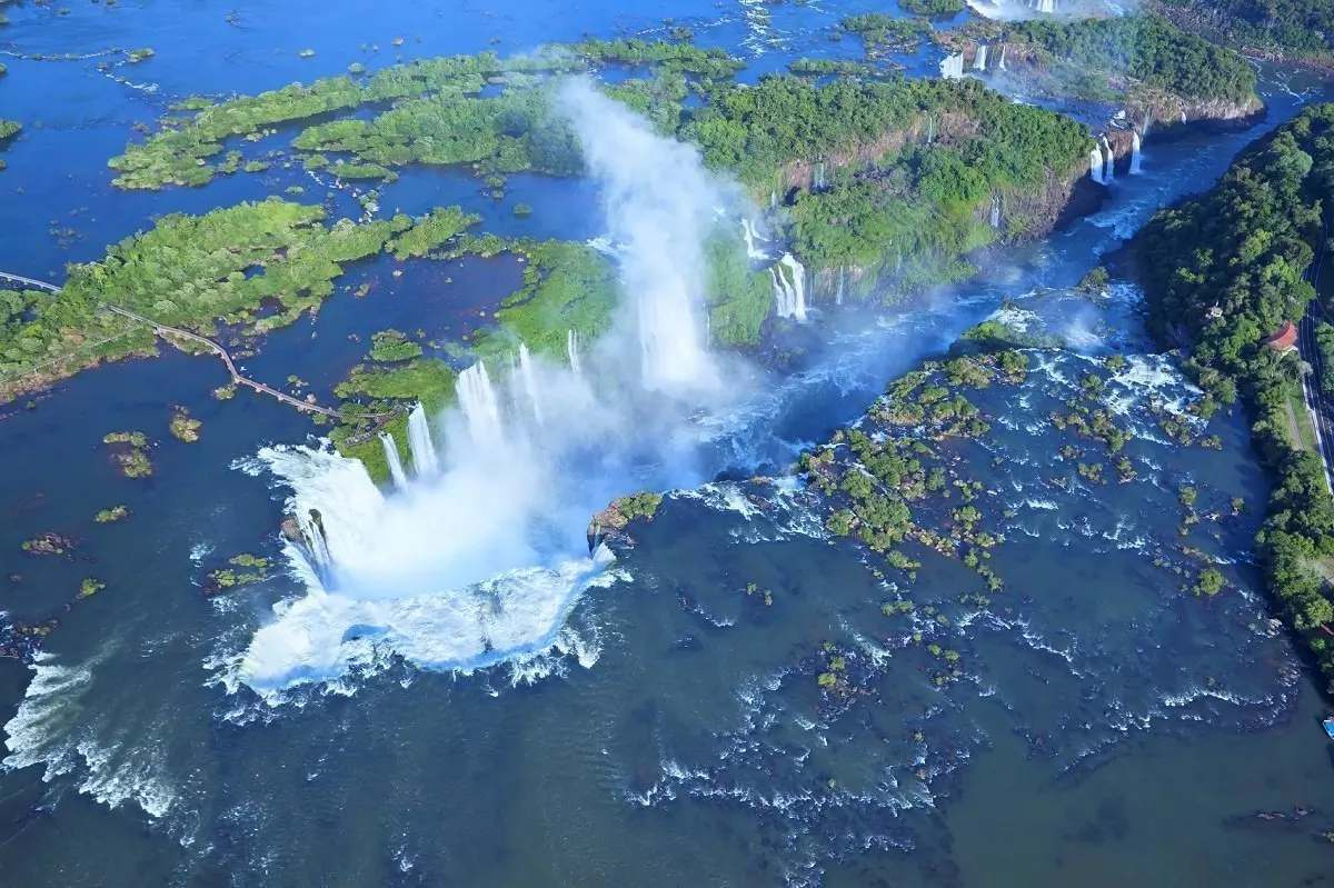 Aan de Braziliaanse kant loop je over een klein verhard pad door het regenwoud dat de hele weg uitkijkt over de vele watervallen aan de Argentijnse kant. Je krijgt de watervallen vanuit verschillende hoeken te zien en via een lange loopbrug kom je op een platform vanwaar je recht omhoog in de Duivelskeel kijkt. Ook hier kun je een goede onderdompeling verwachten door de nevel van de krachtige waterval.