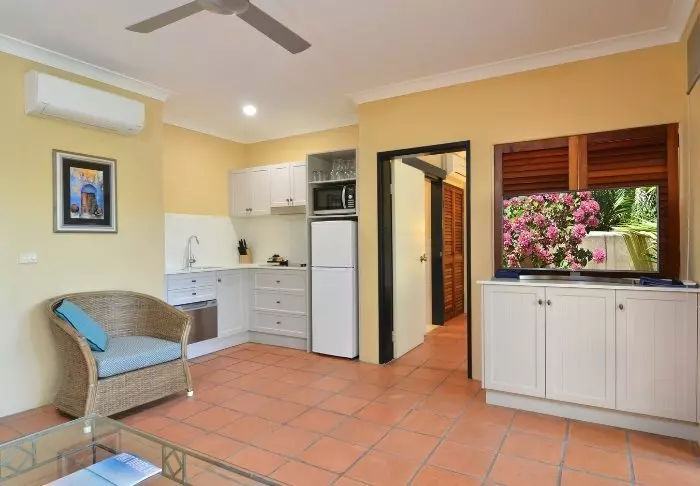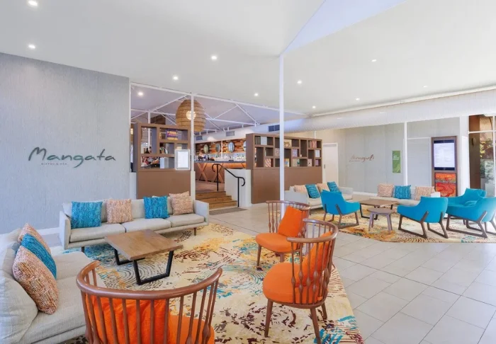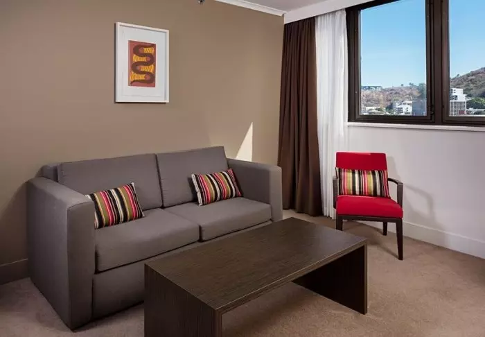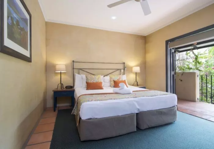 Waar men buiten de gasten een beetje probeert af te schermen van Australië, bent u binnen echt welkom in Australië. Aan de muren hangt lokale kunst en er is geen twijfel over waar u bent. De kamers zijn ruim en hebben allemaal een lounge waar u kunt relaxen met een goed boek en ook een terras of balkon. U heeft hier alle denkbare benodigdheden – en natuurlijk gratis wifi.