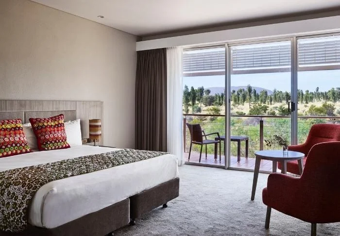 Het hotel zelf ligt middenin het heerlijke Ayers Rock Resort. Restaurants en winkels liggen net om de hoek, maar het hotel zelf heeft ook twee bars/restaurants. Het zwembad ligt in het midden van het hotelcomplex en wordt omringd door – ongelooflijk hier midden in de outback – fijn, groen gras.