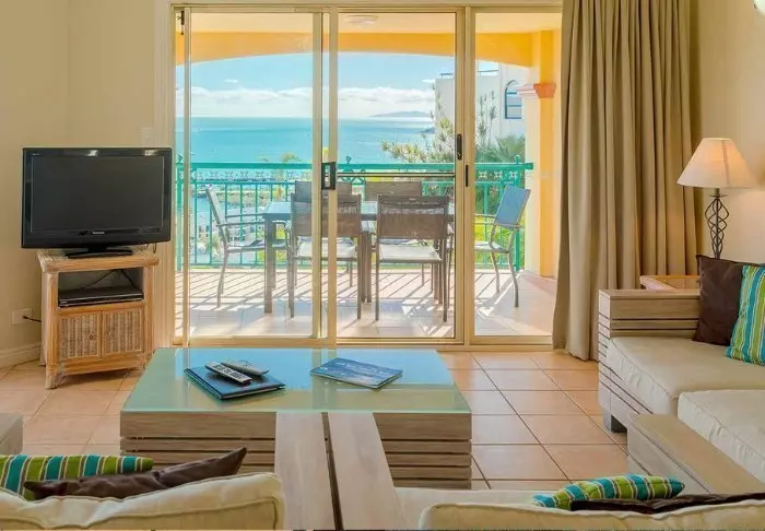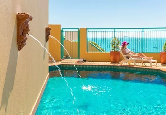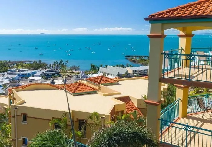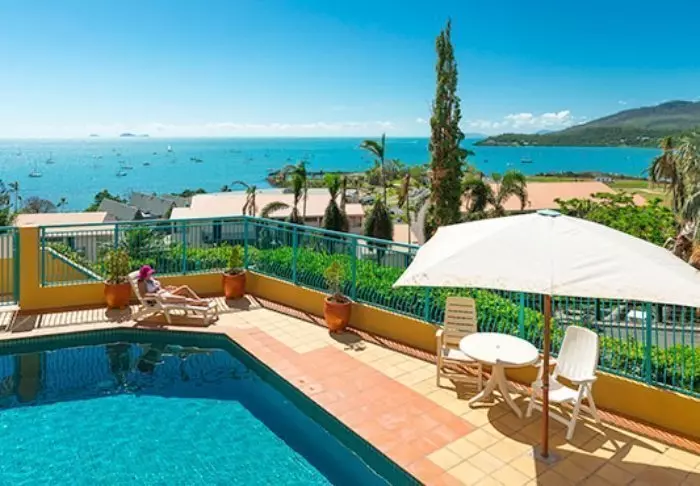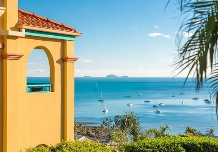 Toscana Village Resort is fantastische gelegen op een kleine heuvel met panoramisch uitzicht over het plaatsje en de Koraalzee met de Whitsunday Islands op de achtergrond.