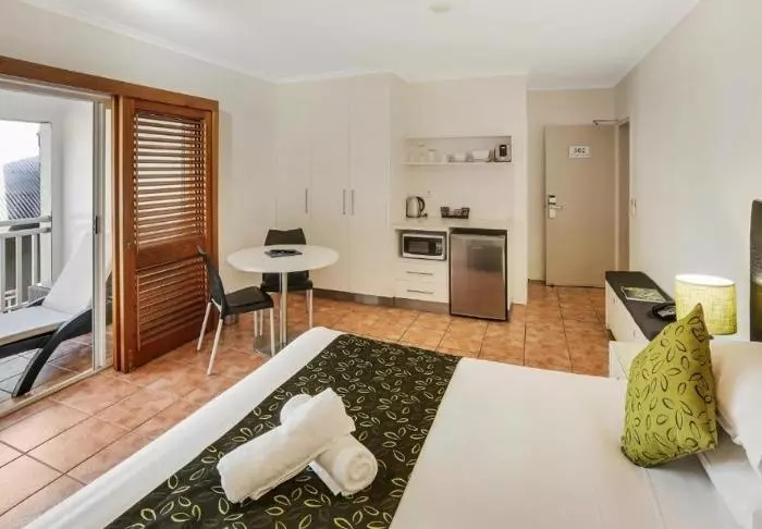 The Edge Apartment Hotel bevindt zich in het stadscentrum van Rockhampton, direct aan de Fitzroy-rivier die door de stad kronkelt. De hotelkamers zijn ingericht in een moderne en eenvoudige stijl, waar het goed toeven is na een belevenisvolle dag. Elke kamer is uitgerust met diverse voorzieningen die een comfortabel verblijf garanderen, zoals een kitchenette met magnetron, broodrooster, minikoelkast en servies. Ook biedt het hotel wifi, flatscreen-tv, strijkijzer en strijkplank, airco en een eigen badkamer met föhn en diverse gratis toiletartikelen. In principe verblijft u in een studio, maar het is mogelijk om te upgraden naar een grotere kamer, met een extra zitgedeelte en een balkon.