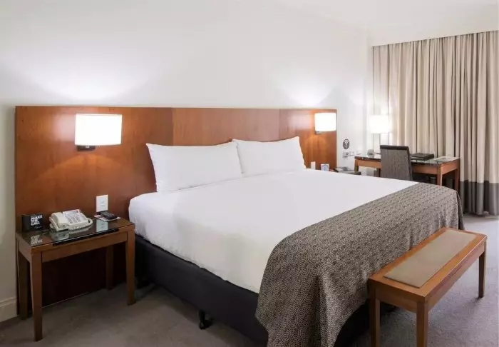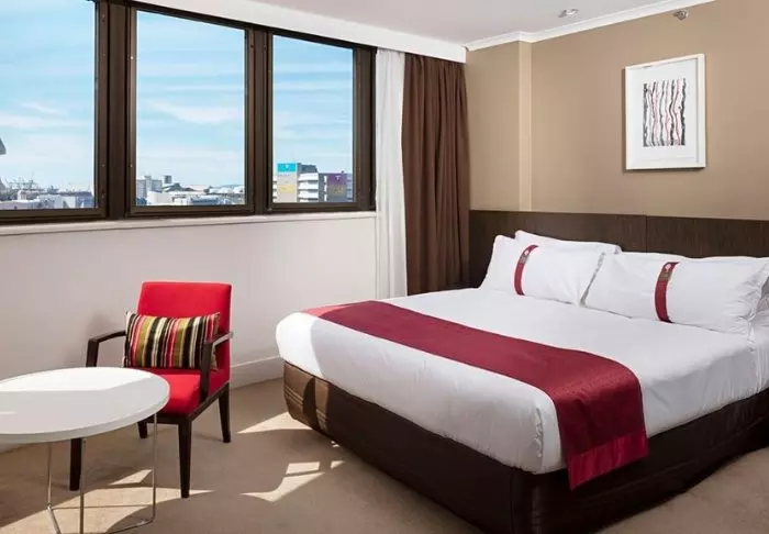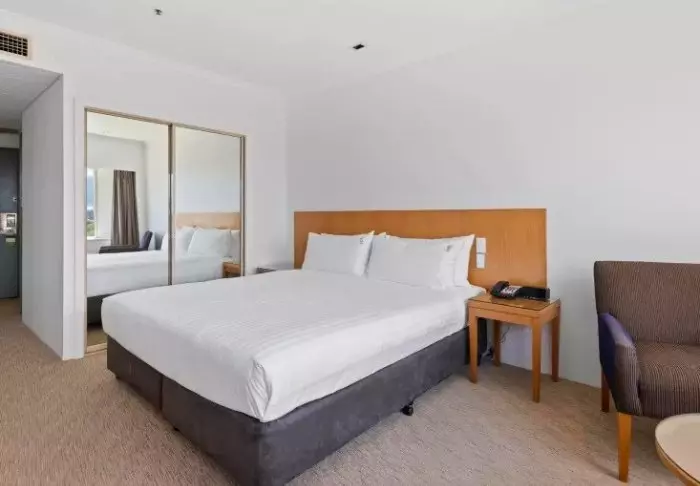 Holiday Inn heeft 226 kamers met kamerhoge ramen, die veel licht naar binnen laten schijnen. Alle kamers hebben airco, kluisje, strijkbout en strijkplank, thee- en koffiefaciliteiten, mini-koelkast, flatscreen-tv en gratis wifi. Het is niet zo gebruikelijk in Australië, maar bij dit hotel is het ontbijt in de prijs inbegrepen!