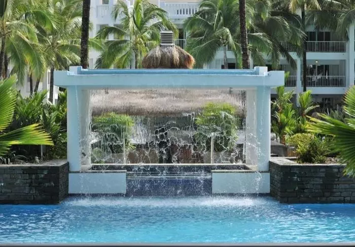 Er zijn hier 345 kamers in verschillende categorieën, maar liefst drie zwembaden, een gigantische tropische tuin, een bijzonder populaire bar en restaurant, een speeltuin voor de kinderen – en heel veel rustige hoekjes voor de volwassenen.