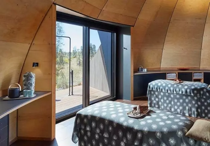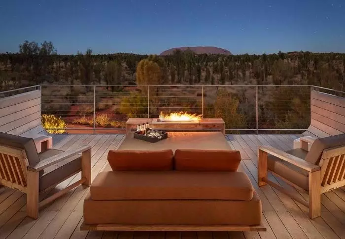 En tent is misschien niet eens het juiste woord. Er zijn kamerhoge ramen met vrij uitzicht op Uluru, maar het dak is gemaakt van canvas, zodat u nog steeds de geuren uit de natuur kunt opsnuiven en de geluiden van buiten kunt horen. Deze semi-tenten zijn ruim en zeer smaakvol ingericht, en natuurlijk voorzien van alle benodigdheden – zoals op afstand bedienbare gordijnen, zodat u ‘s ochtends niet eens uw bed uit hoeft om te zien of de zon boven Uluru is opgekomen. Alle 15 tenten hebben een eigen grote veranda met ligbed, waarin u kunt relaxen met uitzicht op de reusachtige monoliet – of de nacht kunt doorbrengen onder de sterren.