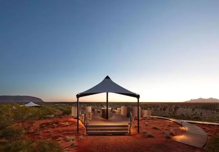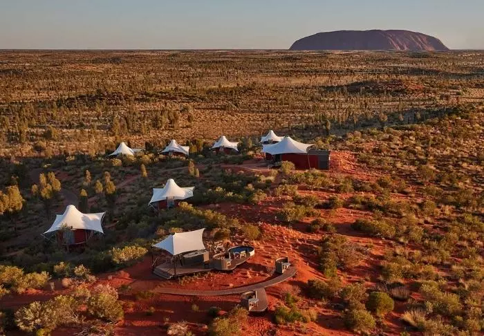 Longitude is een van de meest luxe “camps” van Australië. Het doet denken aan “Out of Africa” van Karen Blixen maar dan met allerlei moderne gemakken, u woont hier namelijk in een…tent.