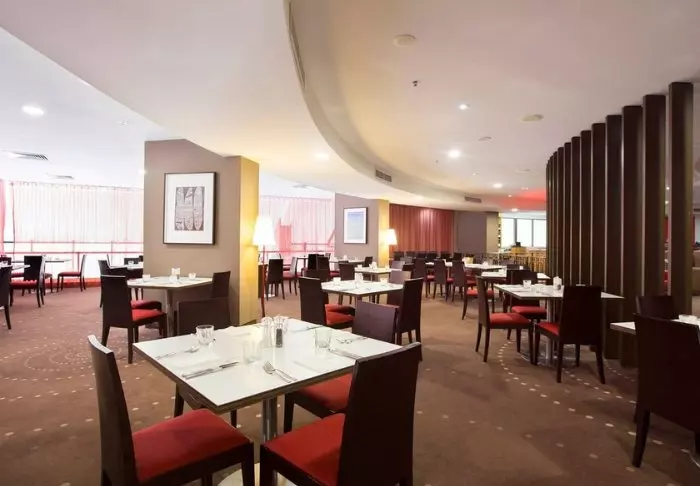 Het hotel heeft ook een eigen restaurant, dat ontbijt en avondeten aanbiedt – en cocktails. Dit laatste is misschien leuk om te weten, omdat het restaurant op de 22e etage ligt en daarom een prachtig uitzicht heeft over de stad – vooral bij zonsondergang! Er is bovendien een zwembad, fitnessruimte en wifi overal in het hotel.