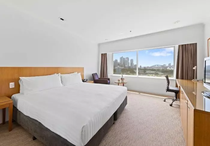 Het is mogelijk om de kamercategorie te upgraden en als extra een kamer te kopen met uitzicht op Sydney Harbour en de skyline.