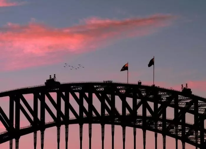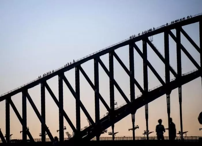 Ze doen het voor de kick om bovenop de brug te staan onder de Australische vlag.
