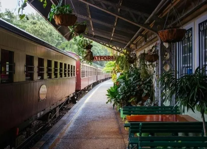 Midden in het regenwoud werd daarom een station gebouwd. Hier konden reizigers eten en drinken kopen – en zelfs overnachten in het kleine hotel. Langzaam groeide deze stopplaats uit tot het plaatsje Kuranda.