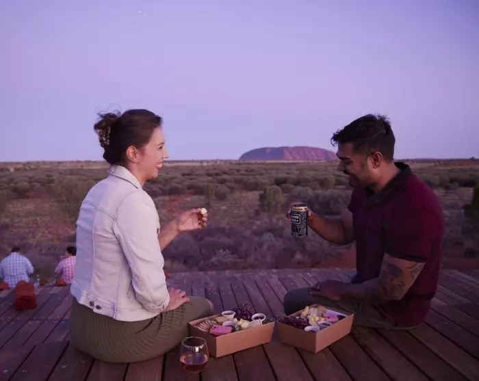 Met Australische wijn in uw glas en heerlijke hapjes op uw bord kunt u achterover leunen en genieten van de indrukwekkende show die zo gaat beginnen. Een combinatie van drones en laserlicht brengt het verhaal van het oude Mala-volk tot leven in een moderne vertelling onder de sterrenhemel. Terwijl u luistert naar traditionele inma-muziek en verhalen in de plaatselijke Pitjantjatjara-taal, voelt u een diepe verbinding met het Australische landschap en het rijke culturele erfgoed. Het is een ervaring die lastig te omschrijven is, maar wel een grote indruk maakt.