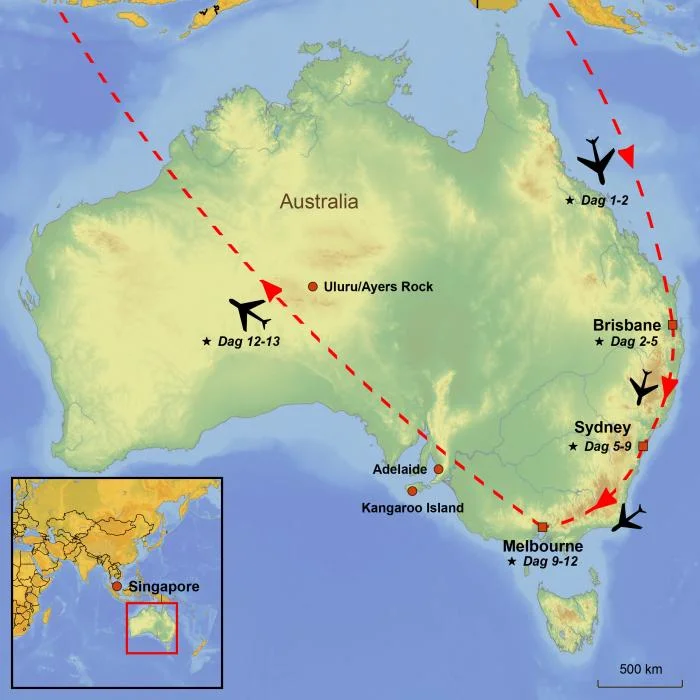 De reis gaat naar de drie grootste steden van Australië: Brisbane, Sydney en Melbourne.