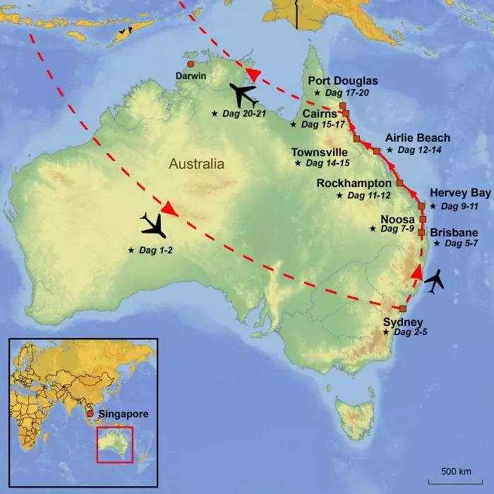 Uiteindelijk arriveert u in Cairns, de drukke kuststad, die vooral bekend staat als vertrekpunt voor excursies naar het grootste koraalrif ter wereld, het Great Barrier Reef.