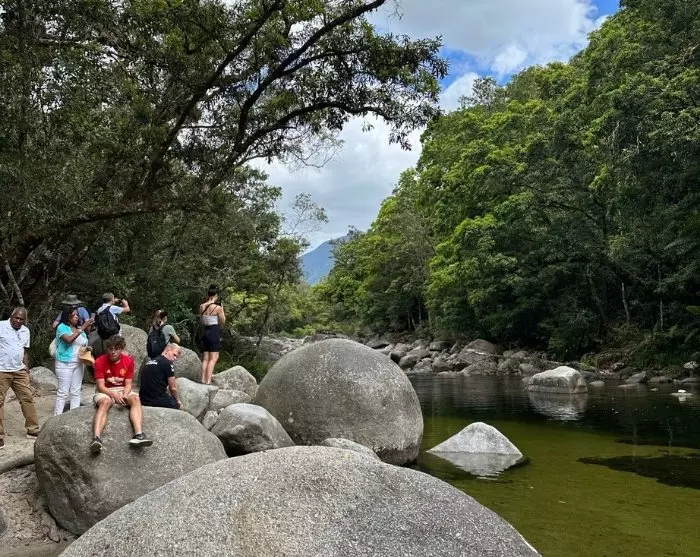 Na Mission Beach nadert u Cairns, maar voordat u daar aankomt, komt u langs Babinda en de beroemde Babinda Boulders. Dit prachtige gebied biedt natuurlijke waterpoelen en gladde rotsformaties, perfect voor een verfrissende duik en een koffiepauze.