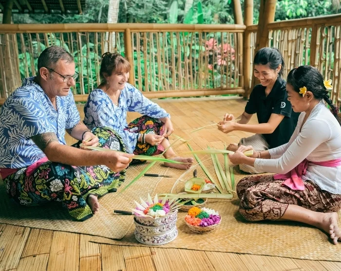 De ervaring begint met een warme ontvangst door lokale vrouwen uit het dorp Manggis, die u inwijden in het ambacht van het maken van traditionele Balinese offeranden. Onderweg leggen zij de symboliek van elk onderdeel uit en laten ze zien hoe deze offeranden een vanzelfsprekend onderdeel zijn van het dagelijks leven en de religieuze rituelen op Bali. Het is een intieme kennismaking met lokale tradities en de gemeenschap waaruit ze voortkomen.