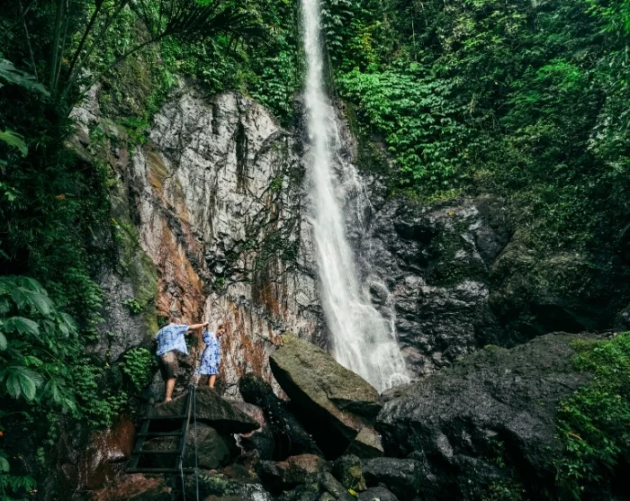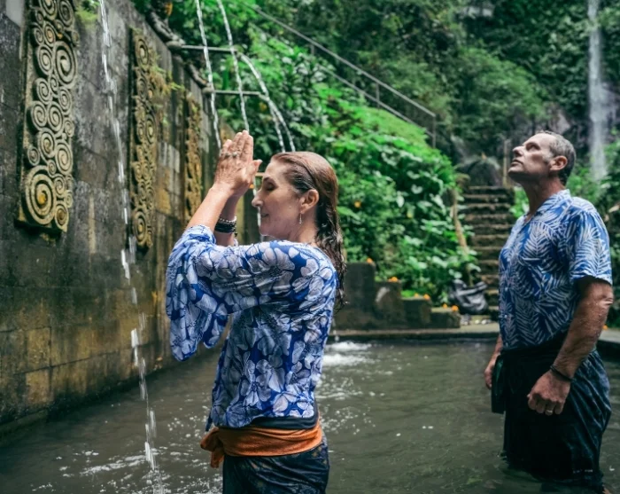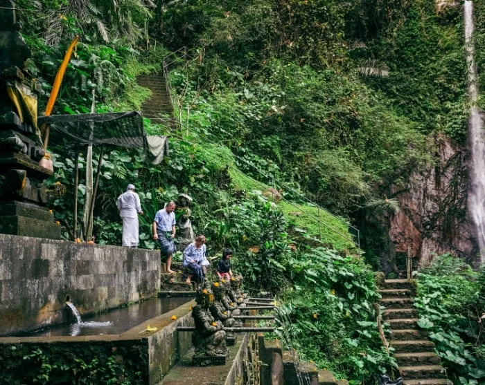 Vervolgens gaat u naar de Jagasatru-waterval. U wordt naar een nabijgelegen parkeerplaats gebracht, vanwaar het een korte wandeling van circa 300 meter naar beneden is tot aan de waterval. In de rustige, groene omgeving neemt u deel aan een traditionele zuiveringsceremonie, waarbij de beweging van het water en de geluiden van de natuur ruimte scheppen voor rust en bezinning. De ceremonie biedt inzicht in Balinese spirituele tradities en hun diepe verbondenheid met de natuur.