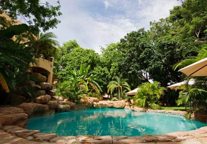 De hele lodge is mooi ingericht in Moorse stijl met gewelfde plafonds, lantaarns, grote kussen en een fijne en smaakvolle mix van neutrale en felle kleuren. Er zijn restaurants, twee bars, zes lounges, een winkeltje, zwembad, spa, boma en een grote tuin met volop ruimte.