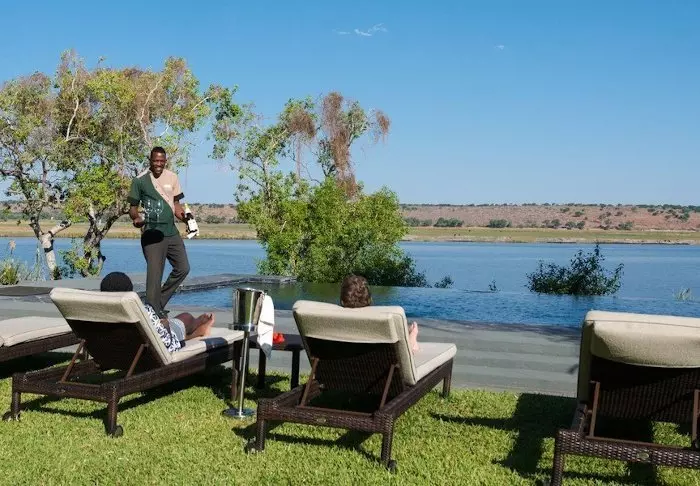 Alle 15 villa’s zijn gebouwd op palen in de Chobe-rivier. Vanaf de grote balkons is er een uniek uitzicht op de rivier en het grote eiland Sedudu, dat midden in de rivier ligt. Eigenlijk hoeft u uw terras niet eens te verlaten als u hier bent. De hele dag kunt u hier zitten en genieten van het leven in de rivier. Olifanten die komen baden; boten die langs varen met toeristen; nijlpaarden die in het water plonzen en vogels die op de terrasleuning komen zitten. Krijgt u dorst, dan kunt u een greep doen in uw eigen minibar, die gevuld is met koele drankjes.