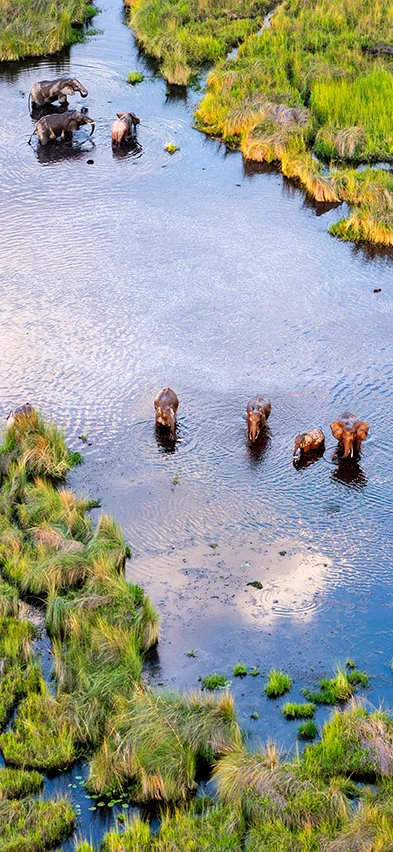 ‘s Ochtends vertrekt u uit het hotel en gaat u naar het oostelijke deel van de Okavangodelta. Deze reis is ongeveer 100 km lang. Onderweg kunt u genieten van de lokale dorpjes en de mopanebomen en misschien ziet u al de eerste wilde dieren. De nationaal parken en wildreservaten in Botswana zijn niet omheind, dus in de droge tijd kan het gebeuren dat olifanten de dorpjes in lopen op zoek naar water.