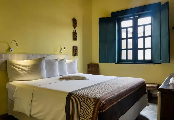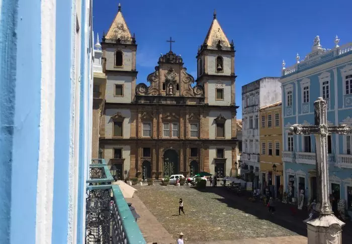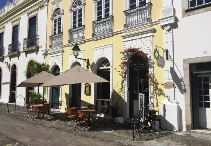 Midden op het plein Largo do Cruzeiro de São Francisco, in het centrum van de kleurrijke historische wijk van Salvador, Pelourinho, ligt dit charmante boetiekhotel. Vanuit de kamers van het hotel kijk je neer op het gezellige plein waar café- en restaurantgasten genieten van een lunch of een kopje koffie. Aan het einde van het plein staat majestueus de indrukwekkende São Francisco-kerk, die ‘s avonds prachtig verlicht is.