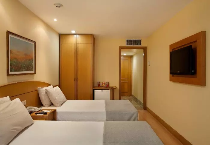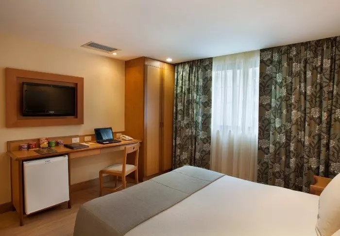 Het hotel beschikt over 70 lichte, functionele kamers, elk voorzien van airconditioning, wifi, een minibar, een TV, een kluis en een eigen badkamer, zodat u na een dag vol indrukken comfortabel kunt ontspannen.