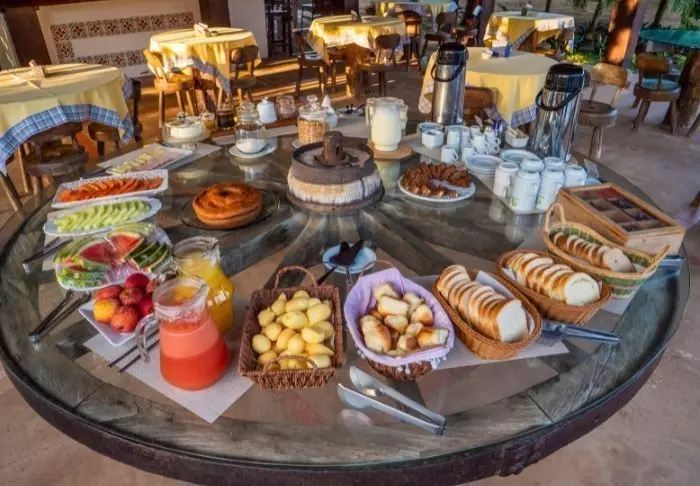 Het hotel heeft een klein restaurant waar Bahiaanse gerechten en allerlei zeevruchten worden geserveerd. Probeer zeker de lokale specialiteit Moqueca de Peixe, een soort stoofpot met vis en tijgergarnalen. Je kunt er ook voor kiezen om te dineren in een restaurant in het centrum van Praia do Forte, op slechts 5 minuten lopen van het hotel.