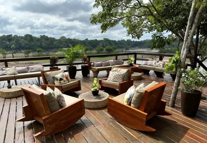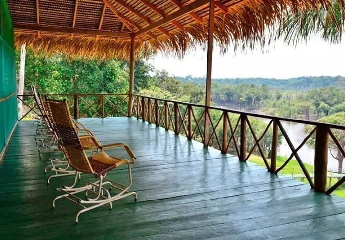 Na je ervaringen in de jungle kun je genieten van de omgeving van de lodge, waar je naast het restaurant een zonneterras, een gemeenschappelijke lounge met verschillende spelletjes en een gezellige tuin vindt. Je kunt ook in de rivier zwemmen en misschien heb je het geluk om een van de rivierdolfijnen te zien die vaak in het gebied verblijven. Er staan ook kajaks tot je beschikking als je zelf op avontuur wilt gaan.