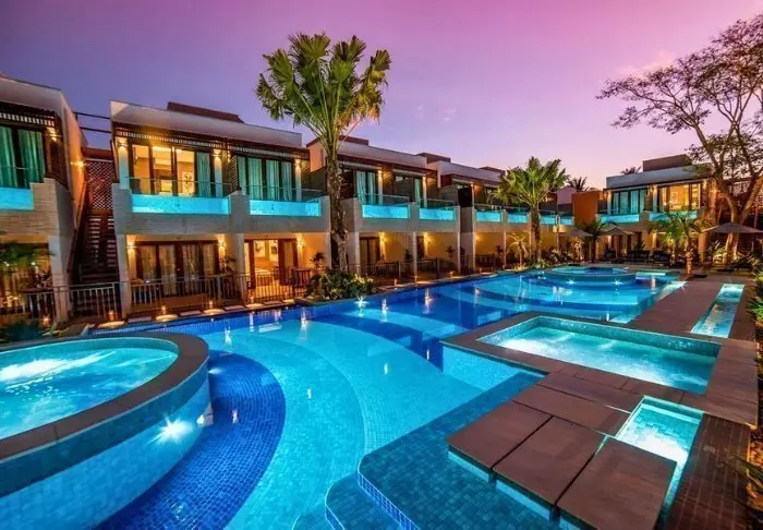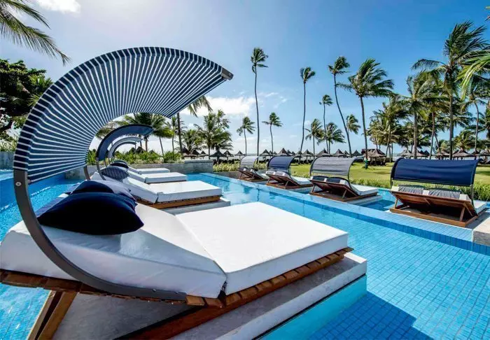 Koel af in een van de zeven zwembaden van het resort of luier onder een parasol op het strand in de comfortabele ligstoelen.