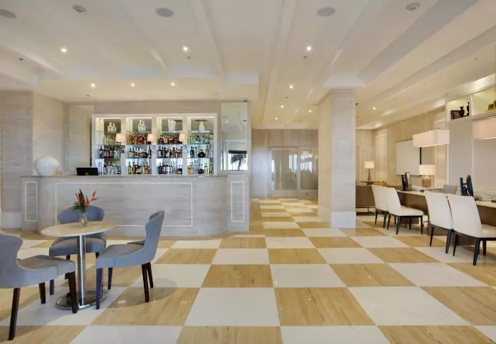 Het serveren vanuit de bar vindt plaats in het restaurant, op de eigen ligstoelen van het hotel aan zee en bij het zwembad.