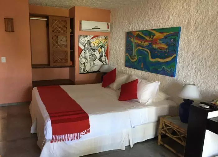 De kamers zijn eenvoudig ingericht met kleurrijke schilderijen van een plaatselijke kunstenaar en beschikken over airconditioning, gratis wi-fi, een tv, een kluisje, een haardroger en een minibar. Ontspan in een hangmat op het terras of balkon terwijl je geniet van het geluid van de golven.