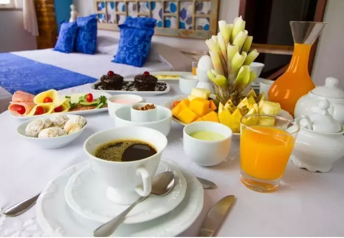 Als gast van het hotel begint je dag met een heerlijk ontbijt met vers fruit, lokaal gebak en koffie.