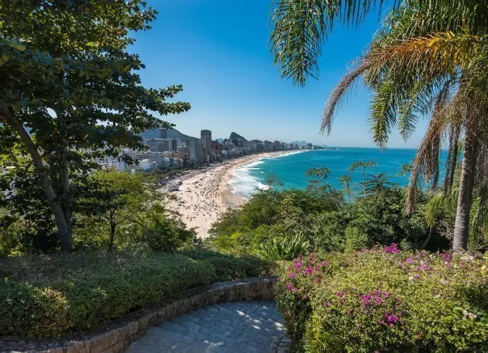 De eerste stop op de tocht is het stadspark Penhasco Dois Irmãos, vanwaar je kunt genieten van het adembenemende uitzicht op de rotsformatie Morro Dois Irmãos aan de ene kant en op de stad en de stranden van Ipanema en Leblon aan de andere kant.