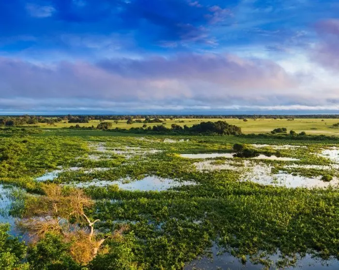Pantanal betekent moeras in het Portugees en de draslanden, met een oppervlakte van meer dan 200.000 km², zijn de grootste ter wereld. Hier kun je gordeldieren, kaaimannen, tapirs, miereneters en capibara’s, het grootste knaagdier ter wereld, van heel dichtbij bekijken. Er leven hier ook katachtigen zoals poema’s, ozelots en jaguars, maar je hebt een beetje extra geluk nodig om die te zien.