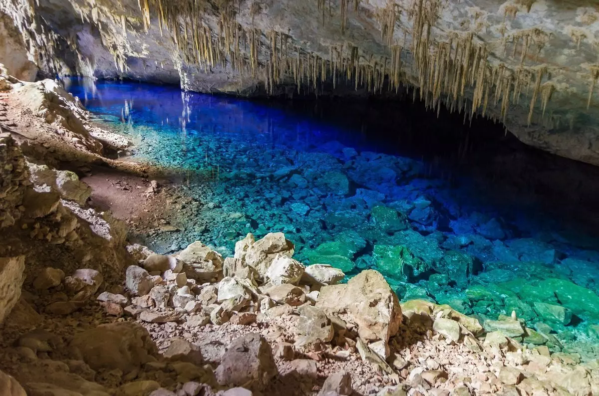 In Bonito kun je snorkelen in kristalheldere rivieren tussen kleurrijke vissen en waterplanten en een bezoek brengen aan de grote zinkput, Buraca das Araras, waar groenvleugelara’s (Ara chloropterus) leven en hun nesten bouwen in de spleten in de rotsen.