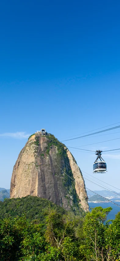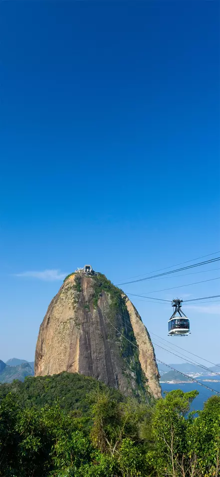 De excursie wordt afgesloten met een bezoek aan de 396 meter hoge berg Pão de Açúcar, ook wel bekend als de Suikerbroodberg. Je bereikt de top van de berg met kabelbanen die over de kust van Rio lopen. Ook hier krijg je een spectaculair uitzicht op deze magische stad terwijl de zon rustig achter de bergen zakt.