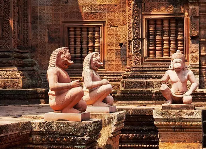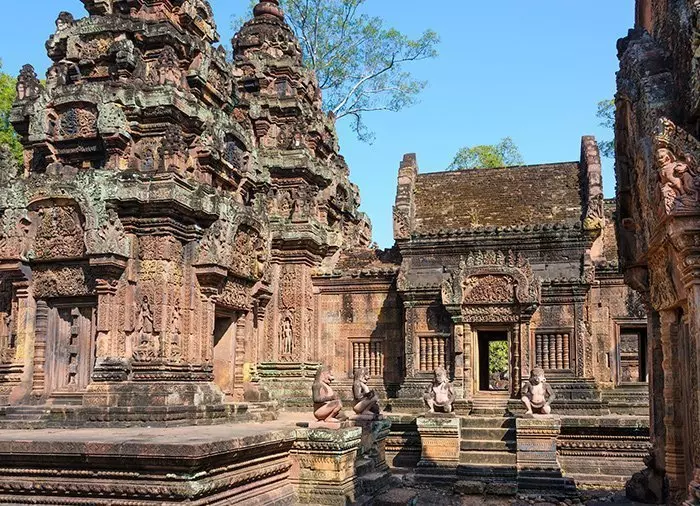 U wordt opgehaald bij uw hotel en rijdt vanaf Siem Reap in ongeveer 1 uur naar de Banteay Srei tempel, ook wel de Roze Tempel genoemd. De tempel wordt beschouwd als een van de juweeltjes van de tempels van Angkor. Deze tempel is een van de kleinste, maar erg goed bewaard gebleven en met het fijnste en sierlijkste snijwerk in het roze zandsteen. De tempel herbergt twee rijkelijk versierde bibliotheken, evenals honderden figuren en goden die op de muren zijn uitgesneden, die momenten uit de geschiedenis van het hindoeisme uitbeelden. Vervolgens gaat u naar de kleine Banteay Samre tempel, die in veel opzichten lijkt op Angkor Wat – vooral wat betreft de stijl van de torens en balustrades. Nadat u heeft genoten van de schoonheid van de tempels, gaat u terug naar uw hotel.