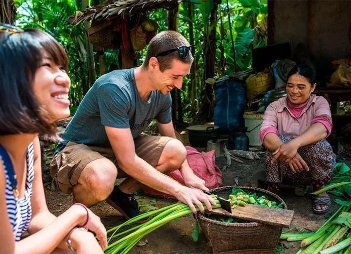 U wordt opgehaald bij uw hotel en gaat eerst de ochtenddrukte meemaken op de plaatselijke verse voedselmarkt. Vervolgens gaat u naar de biologische boerderij, waar u zelf een deel gaat oogsten van de groenten die worden gebruikt voor de kookcursus van vandaag. Een bekwame kok zal u begeleiden bij het bereiden van de specialiteiten, en ondertussen vertellen over hoe de Cambodjaanse cultuur de eetcultuur beïnvloedt.