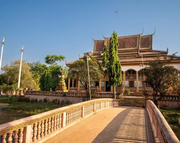 Na de lunch gaat de reis verder naar een nabijgelegen boeddhistische tempel. Hier zie je een traditionele Khmer-zegening uitgevoerd door een boeddhistische monnik, die je een uniek inzicht geeft in de lokale religieuze praktijken en overtuigingen.