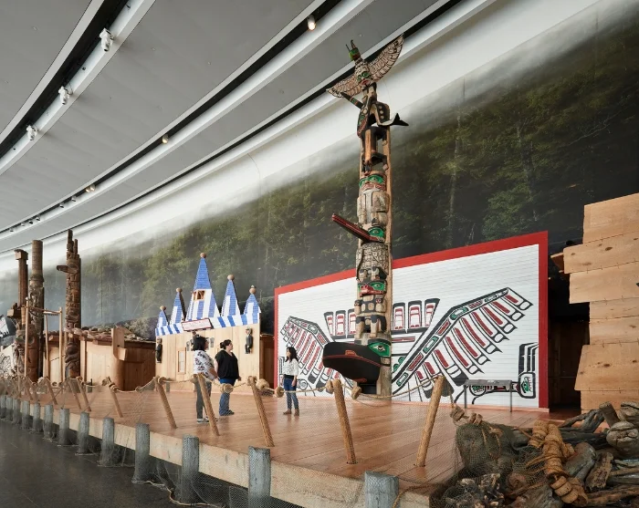 Betreed de adembenemende Grand Hall, een architectonisch hoogstandje met prachtig gebogen ramen die uitkijken op Parliament Hill. Wandel over de sfeervolle kustpromenade, waar u zes karakteristieke inheemse huizen tegenkomt en ’s werelds grootste verzameling totempalen bewondert. Onderweg ziet u Bill Reids indrukwekkende meesterwerk in pleister, “Spirit of Haida Gwaii”, en Robert Davidsons opvallende bronzen sculptuur, “Raven Bringing Light to the World”. Beide kunstwerken brengen op schitterende wijze de rijke tradities en verhalen van de inheemse volkeren van Canada tot leven. De tentoonstellingen nodigen u uit om hun levendige erfgoed verder te ontdekken. In de onlangs geopende Canadian History Hall vindt u meer dan 15.000 jaar geschiedenis, tot leven gebracht met boeiende exposities en tal van interactieve ervaringen.
