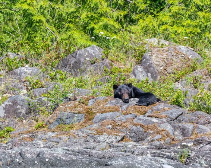 Uw avontuur begint bij het Marine Centre, waar u aan boord gaat voor een tocht over de fjorden van het prachtige Clayoquot Sound, bekend om zijn ongerepte natuur en rijke dierenleven. In de winter houden zwarte beren een soort winterslaap, maar vanaf mei komen ze weer tevoorschijn uit hun holen en zoeken ze de oevers op, op zoek naar voedsel. Vanaf de boot kunt u op uw gemak hun gedrag observeren en fotograferen wanneer ze in de getijdenzone op zoek gaan naar eten.