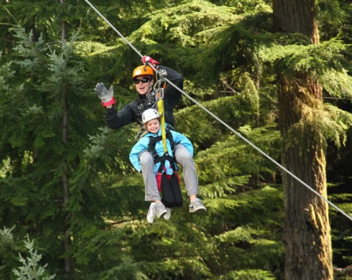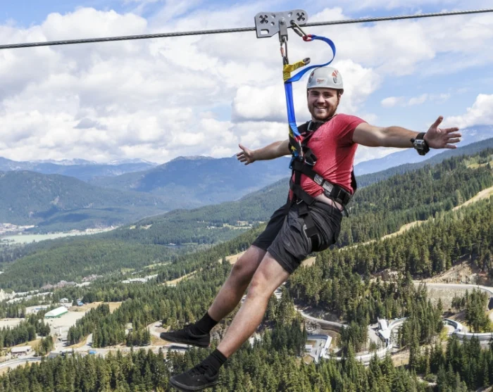 Uw avontuur begint op de top van Blackcomb Mountain, waar u zorgvuldig wordt vastgemaakt in het harnas en over een traject van meer dan twee kilometer zweeft, op maar liefst 180 meter boven de grond. U voelt niet alleen de spanning van de snelheid, maar geniet ook van een adembenemend uitzicht op de indrukwekkende bergwildernis rond Whistler.