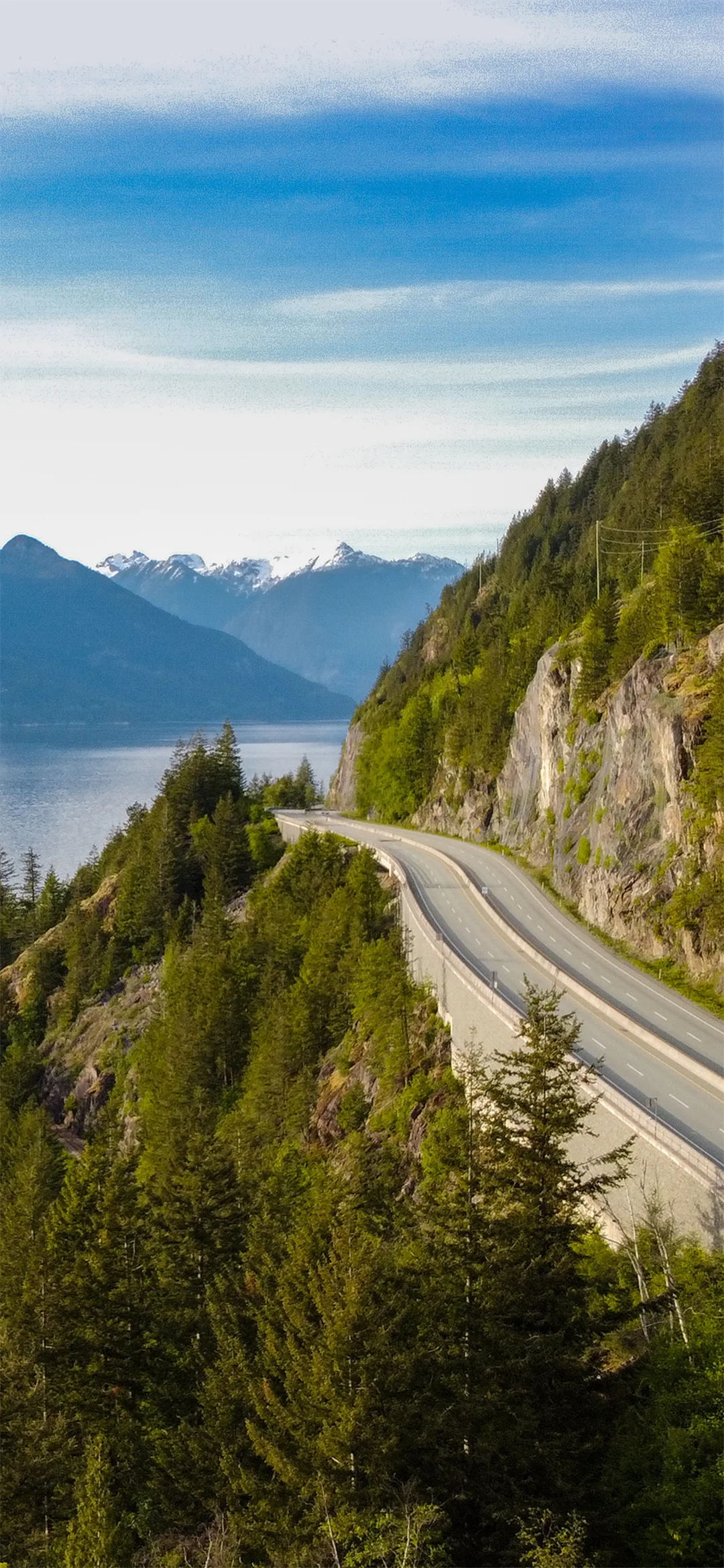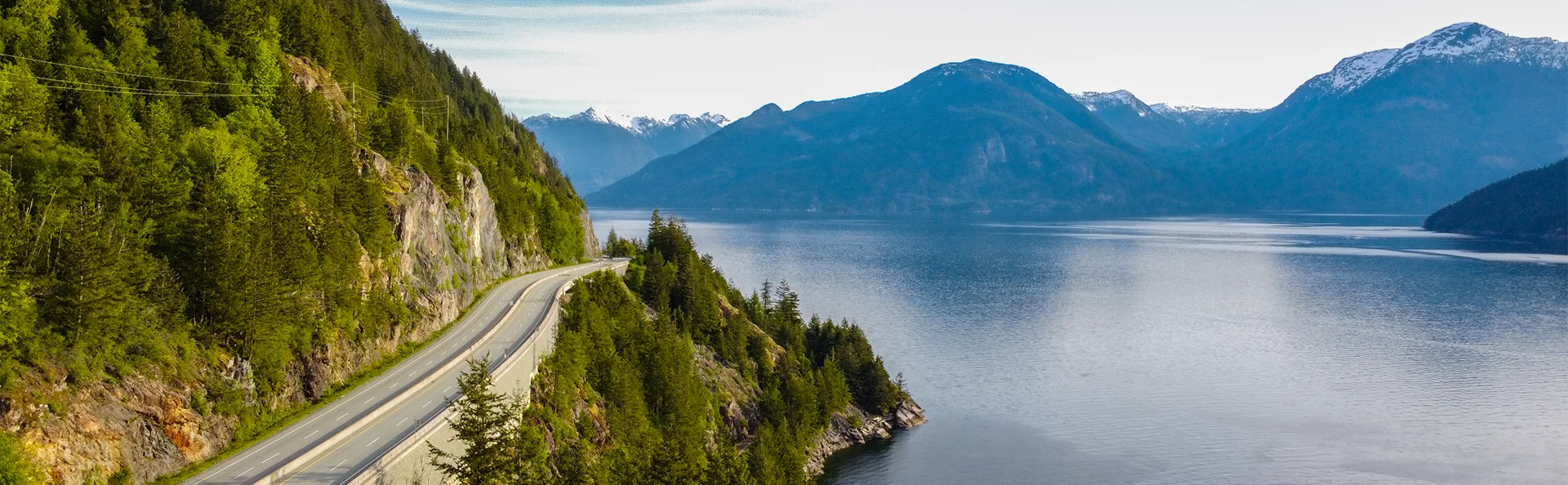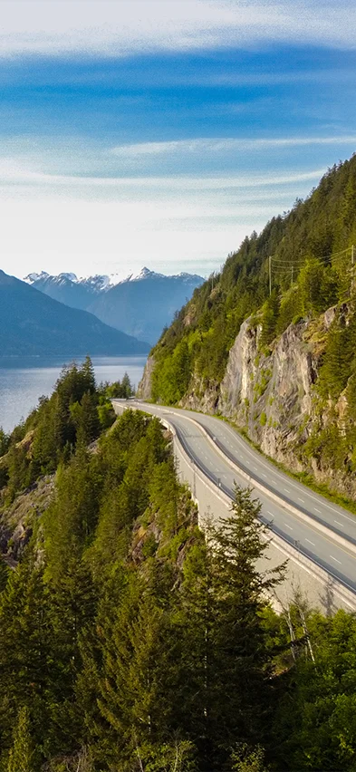 Hoewel u inmiddels al meerdere iconische wegen hebt ervaren, is de route van vandaag—een rit van net iets minder dan anderhalf uur—daarop geen uitzondering. Wanneer u Whistler verlaat, rijdt u over Highway 99, beter bekend als de “Sea to Sky Highway”. De naam verraadt het al: tijdens deze tocht krijgt u een prachtig samenspel te zien tussen hoge bergtoppen aan de ene kant en een fonkelende kustlijn aan de andere. Van Whistlers ruige bergen tot diepe fjorden—u beleeft het vandaag allemaal.