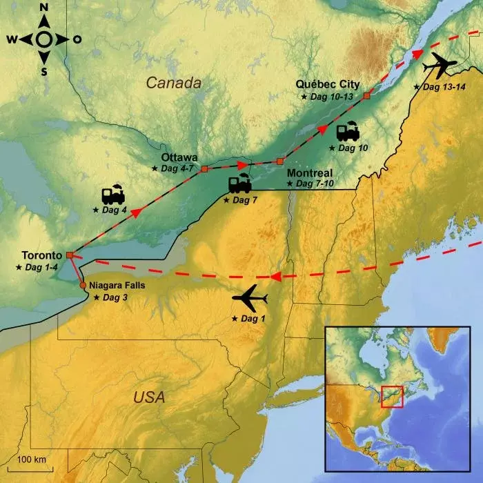 Ga met ons mee op een aantrekkelijke treinreis langs een aantal van de meest sfeervolle en cultureel belangrijke steden van Oost-Canada: Toronto, Ottawa, Montreal en Québec – met als kers op de taart een begeleide excursie naar de wereldberoemde Niagara Falls.