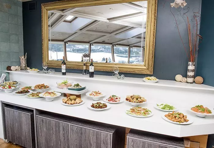 Geniet van je ontbijt in het restaurant van het hotel met uitzicht op het prachtige meer.