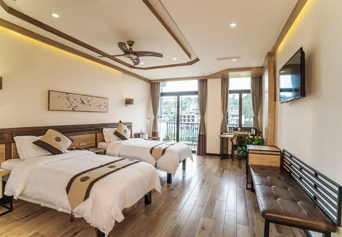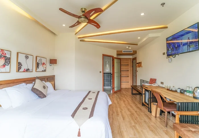 De stijlvolle kamers zijn ingericht met traditionele Chinese bedden en met rustgevende kleuren aan de muren. Elke kamer heeft airconditioning, minibar, kluisje, wifi en een eigen badkamer, maar er is geen tv of telefoon zodat u optimaal kunt genieten van de prachtige en ontspannende omgeving.