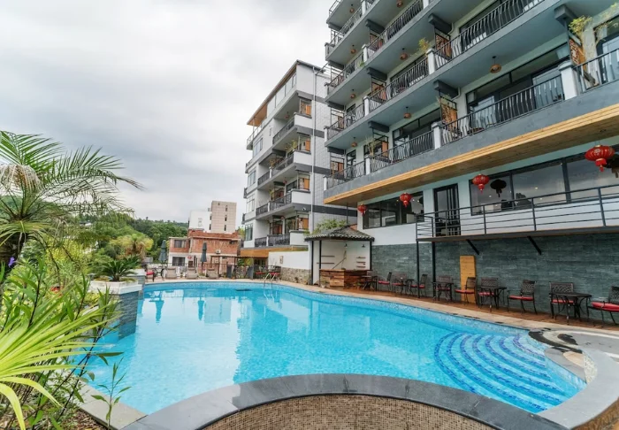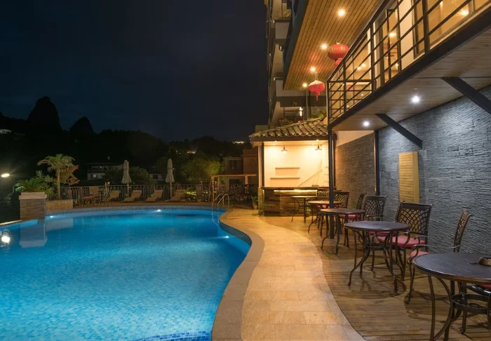 Het New West Street Hotel ligt maar 10 minuten lopen van het centrum van Yangshuo en op een steenworp afstand van de beroemde West Street, waar de westerse en oosterse cultuur samensmelten tot één. Tegenover het hotel vindt u het prachtige Yangshuo Park, waar u ‘s ochtends de buurtbewoners tai-chi kunt zien doen of de trap kunt nemen naar de pagode op de kalkstenen berg en kunt genieten van het uitzicht op de stad en de weelderige kliffen eromheen.