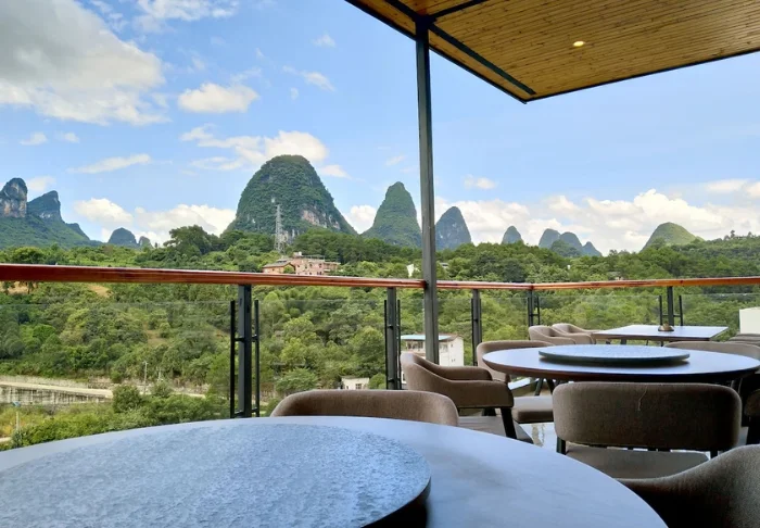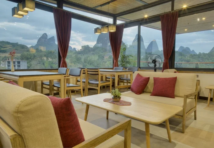 Het hotel heeft een restaurant op het dak waar Chinese gerechten en eenvoudige internationale klassiekers worden geserveerd, in een ontspannen sfeer. Het is een heerlijke plek om de dag te beginnen of de avond af te sluiten, terwijl het licht langzaam over de bergen wegzakt.
