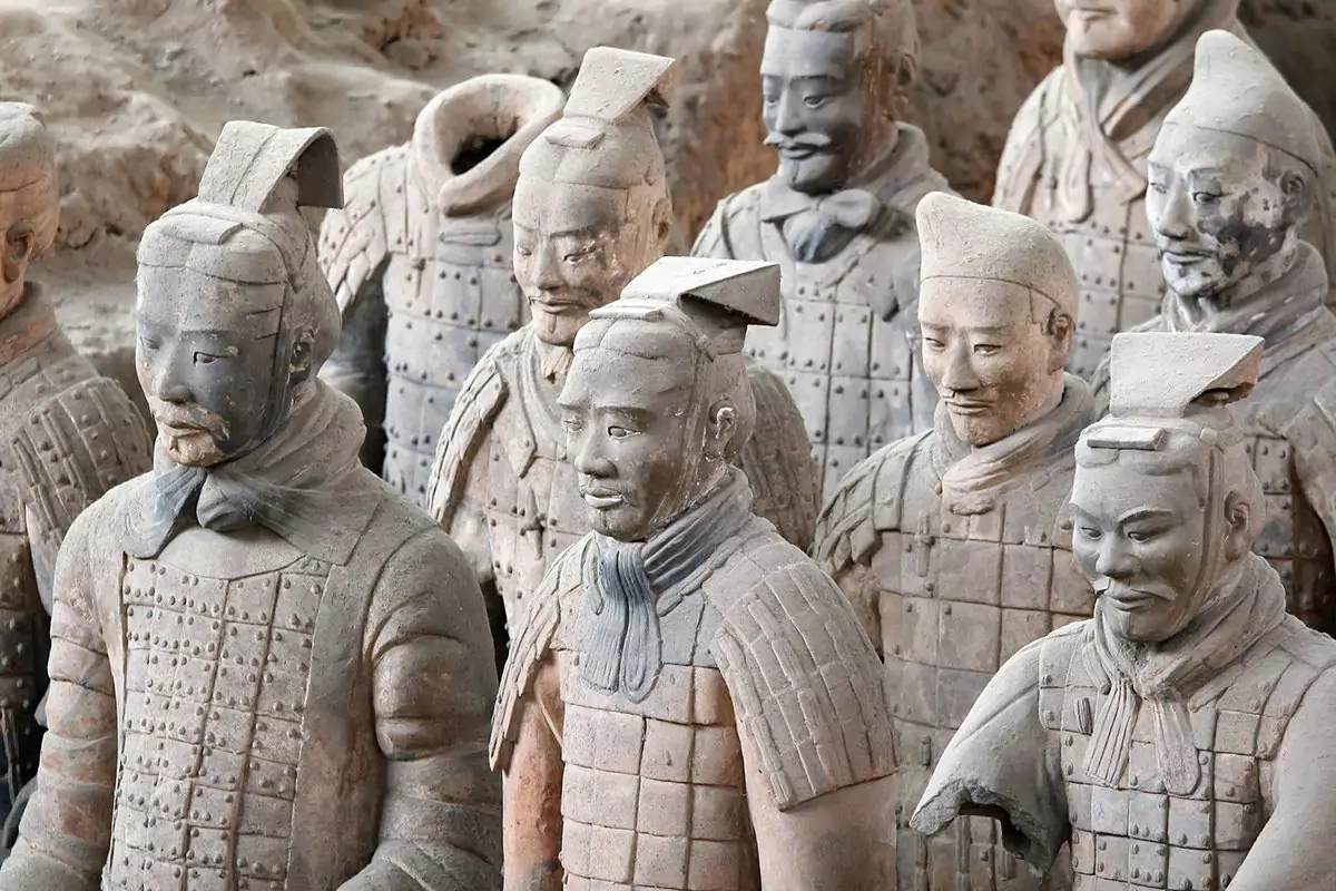 Het terracotta leger bestaat uit duizenden manshoge soldaten, opgesteld in gevechtspositie, en honderden strijdwagens en paarden. Er wordt aangenomen dat de eerste keizer van China dit leger liet maken om zijn graf te beschermen. Een van de unieke dingen aan deze kleibeelden is dat elke figuur uniek is, en hun kleding en gebruiksvoorwerpen geven een fantastisch inkijkje in het leven van meer dan 2000 jaar geleden.