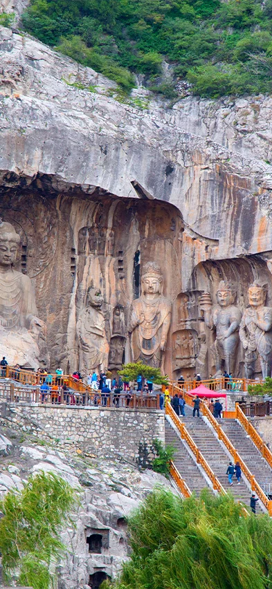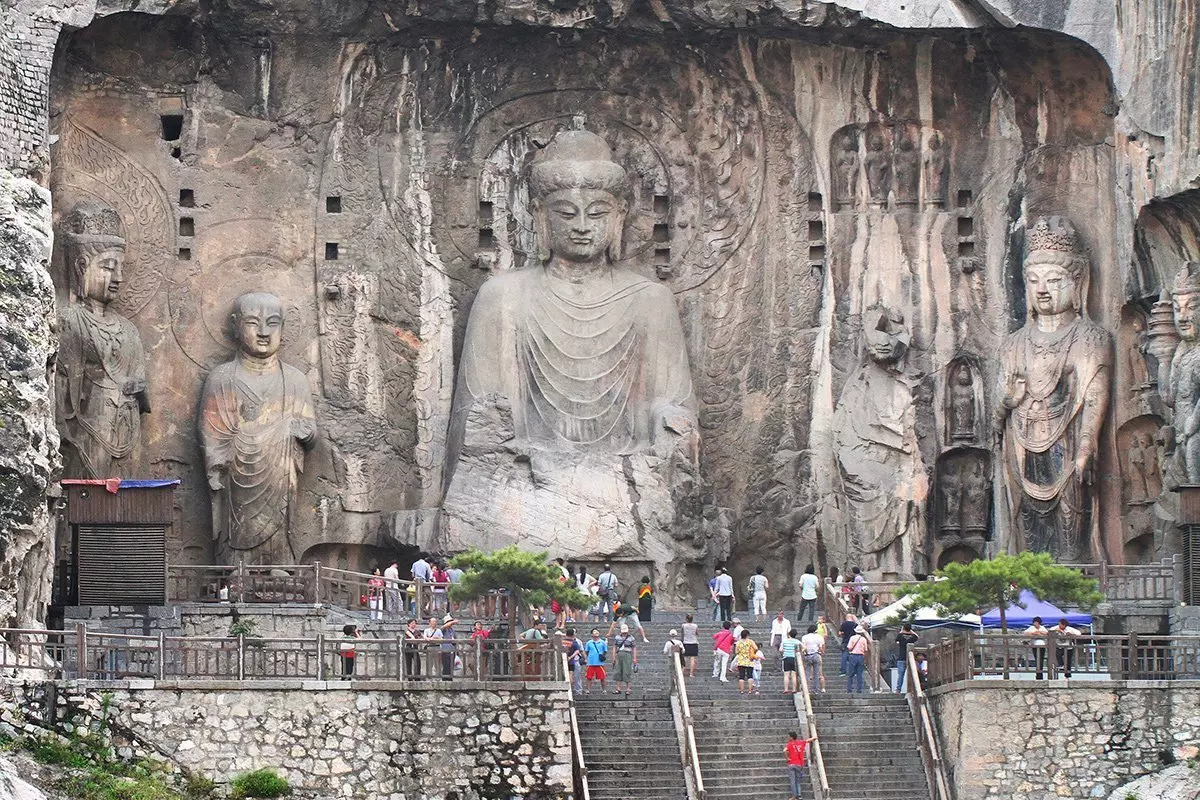 U bezoekt de belangrijkste grotten, waaronder de grot van de Voorouders, die werd uitgehouwen tussen 672-675 tijdens de Tang-dynastie. De grot van de Voorouders is de grootste en meest indrukwekkende van allemaal. Hier vindt u de 17 meter hoge Boeddha, die oorlellen heeft van 2 meter lang. Meestal zijn Boeddha’s masculien, maar het gezicht van deze Vairocana Boeddha (Losana) is erg feminien, en men zegt dat het keizerin Wu Zetian van de Tang-dynastie is. Het Boeddhabeeld is vergezeld door de twee discipelen, Ananda en Mahakasyapa en twee bodhisattva’s.