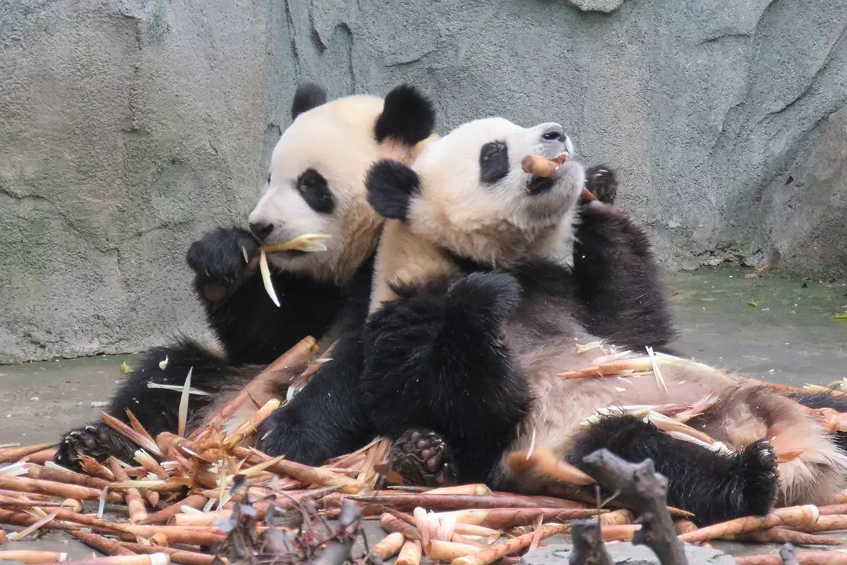De panda is wel 15 uur per dag bezig met eten. Er zit weinig voeding in bamboe, dus een volwassen panda moet dagelijks tussen de 15 en 20 kilo eten om te overleven. Ook daarom zult u merken dat vooral de volwassen panda’s luier zijn dan de andere en gewoon slapen of eten, terwijl de jongere panda’s meer tijd hebben om te spelen en elkaar te plagen.